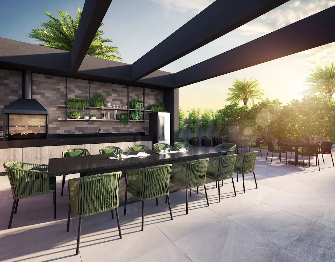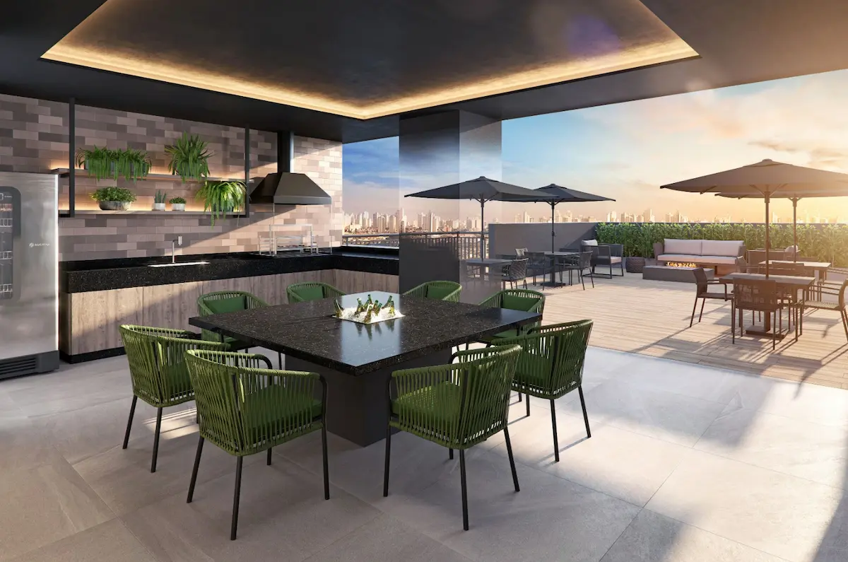 - Sunset Barbecue: espaço gourmet para curtir festas com vista panorâmica da cidade e o pôr do sol