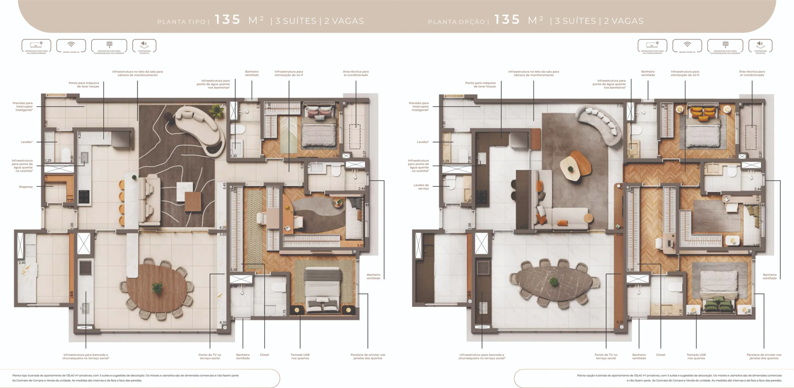 | 135m² | 3 Suítes com Lavabo de serviço | 2 Vagas** |
