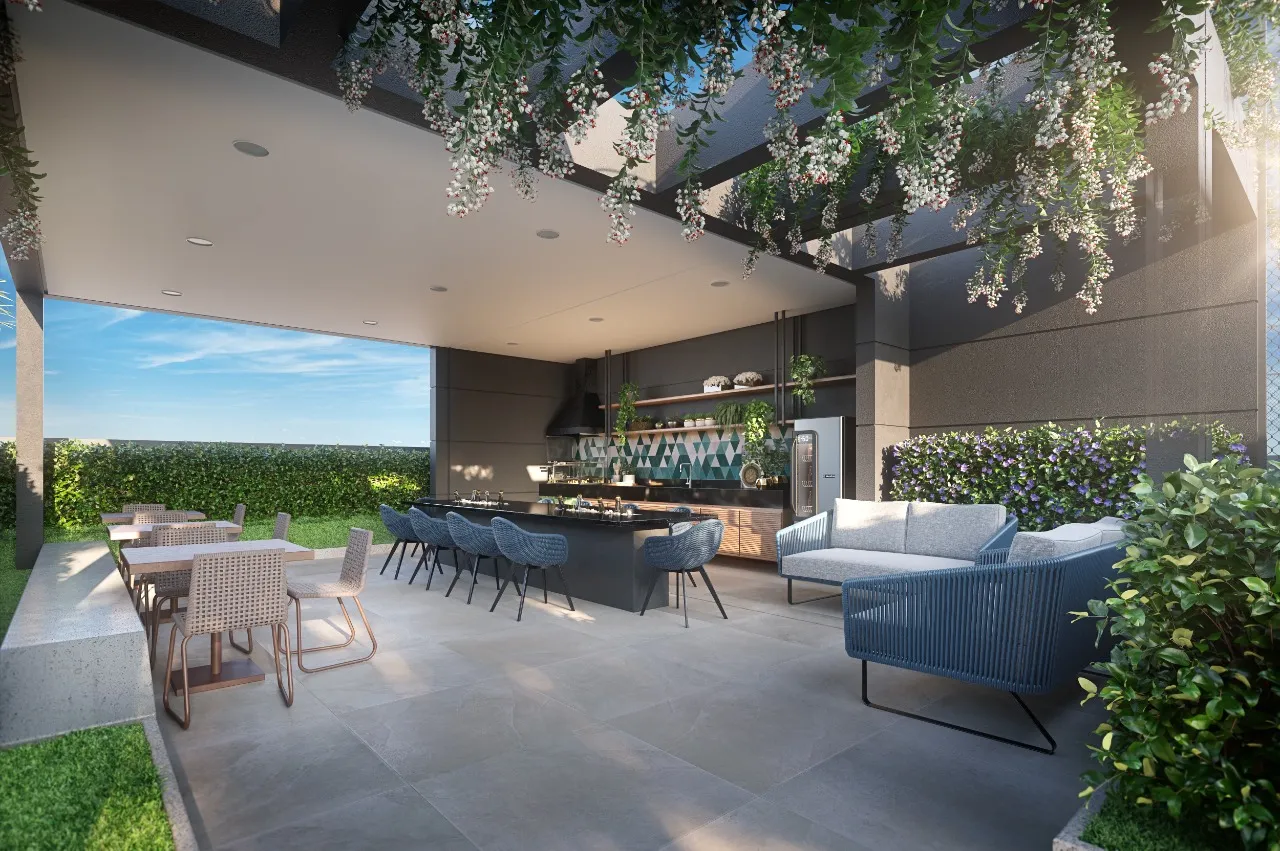Unidades Garden, localizadas no 5º pavimento, oferecem um conceito diferenciado, com amplo Terraço Descoberto que pode ser personalizado e transformado em um charmoso espaço de convivência ou em um jardim exclusivo. Além disso, as unidades garden possuem vagas cobertas e determinadas.