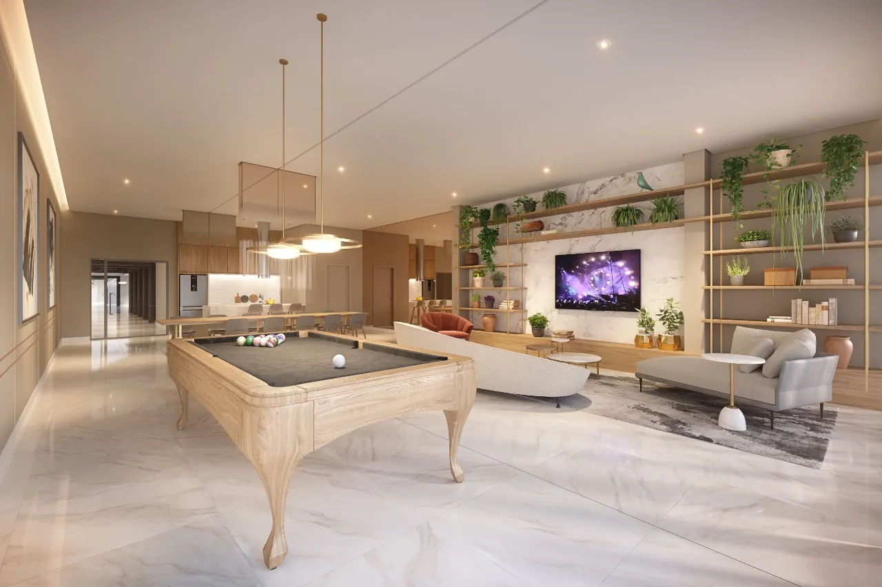 Um andar inteiro elevado voltado ao lazer e ao entretenimento, reunindo espaços para diversão, esportes e relaxamento.