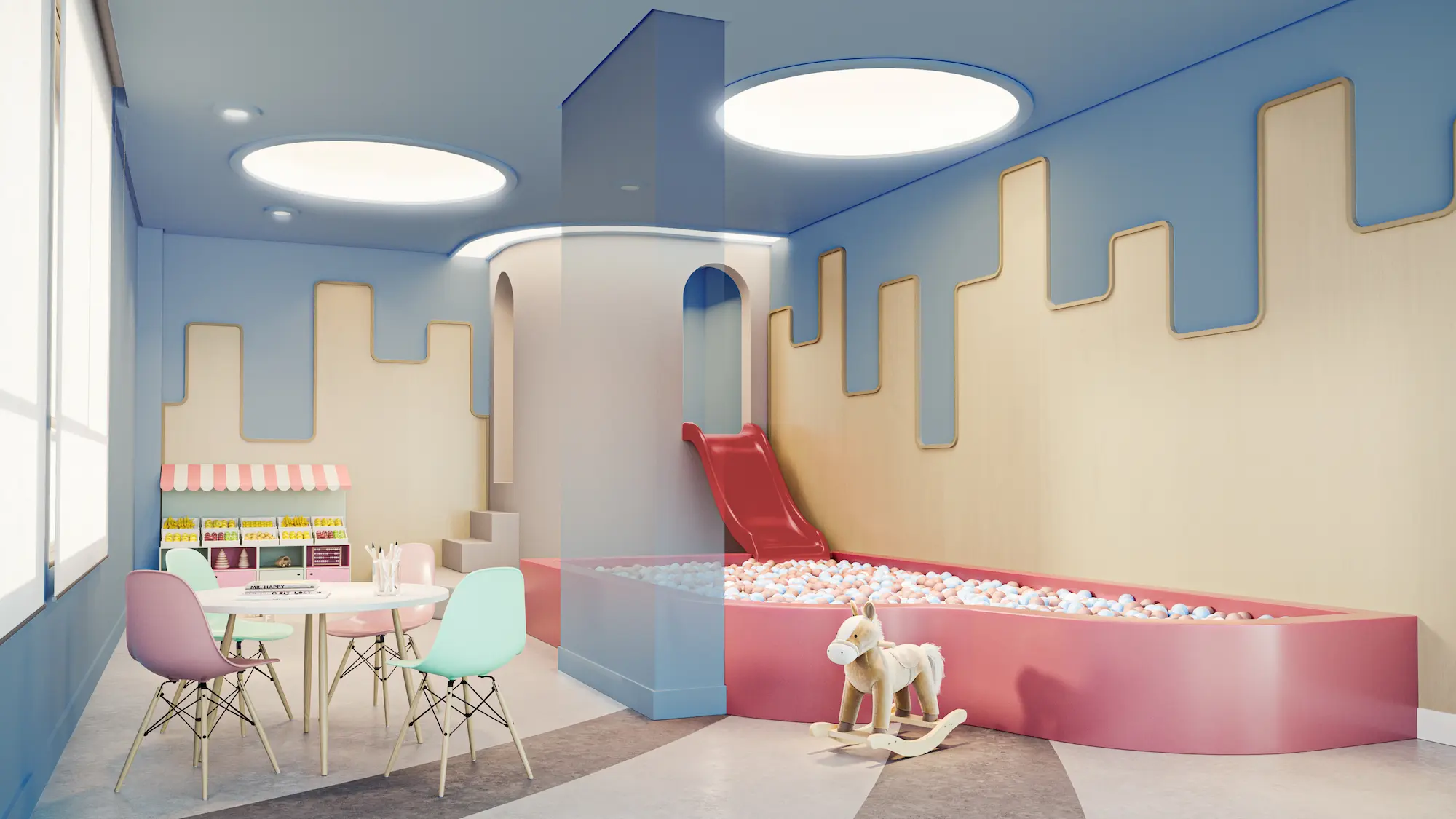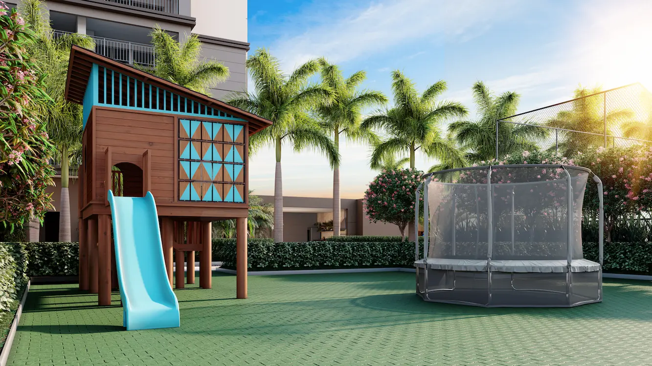 As crianças contam com brinquedoteca equipada, playground com brinquedão e cama elástica, além da piscina infantil, garantindo muita diversão com segurança.