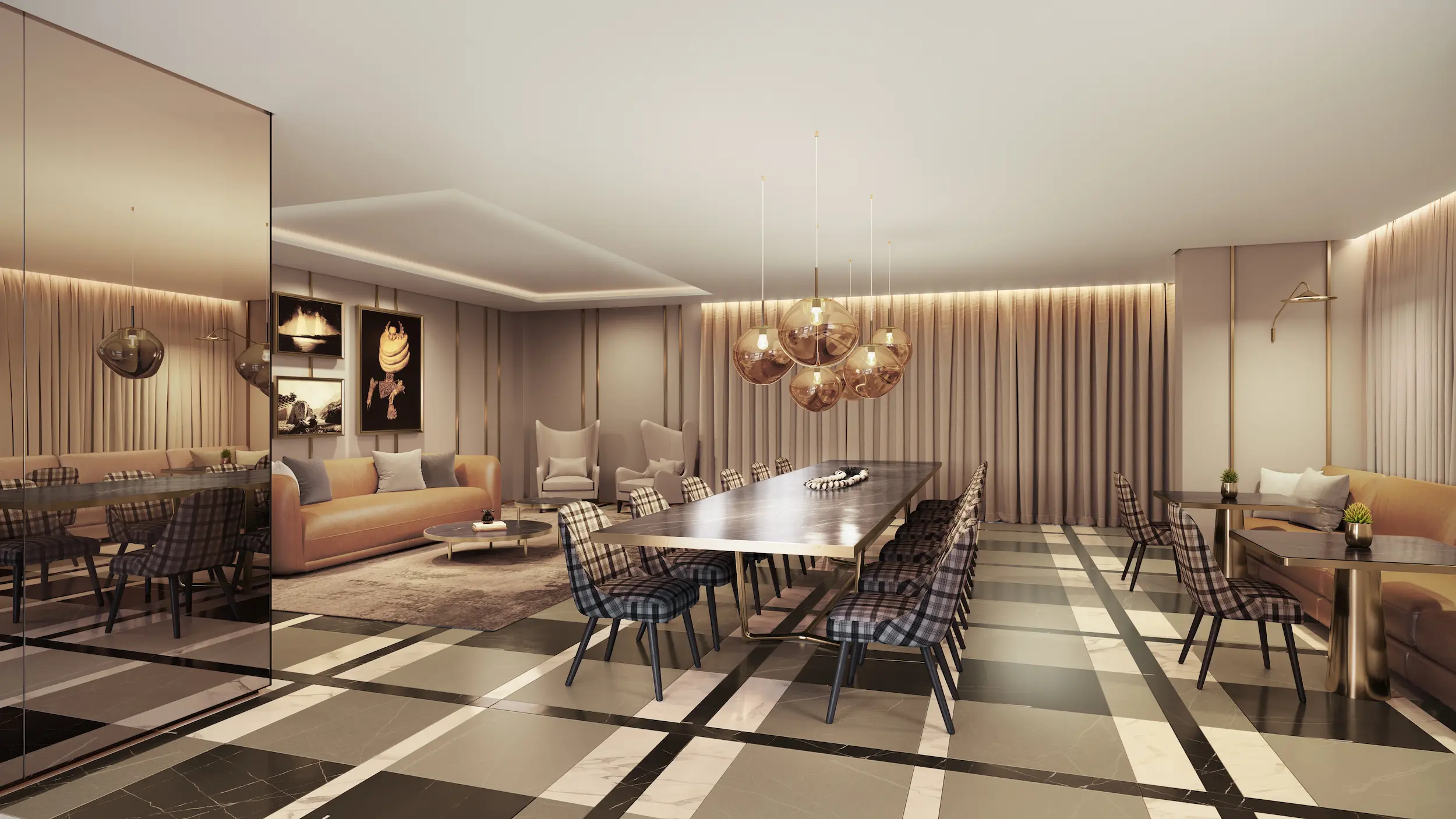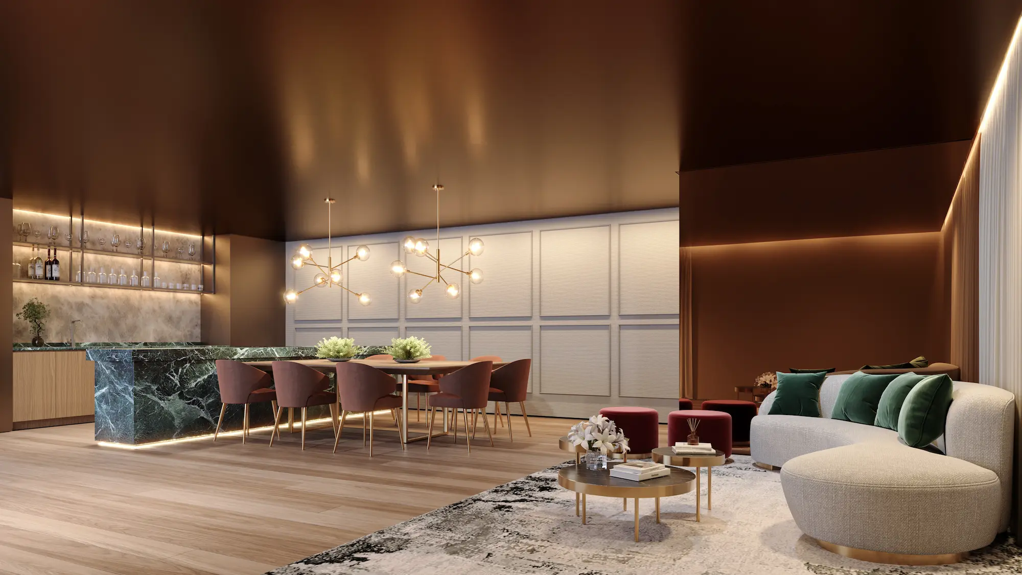 Inspirado em um dos hotéis mais emblemáticos da nobreza britânica, o Café Royal combina com perfeição requinte, conforto e prestígio. Localizado no coração vibrante de Londres, onde história, cultura e negócios se encontram, sua atmosfera elegante serve de inspiração para os espaços sociais do United Living Ipiranga.